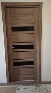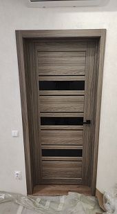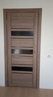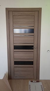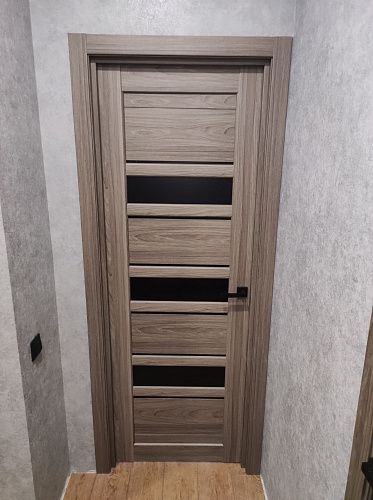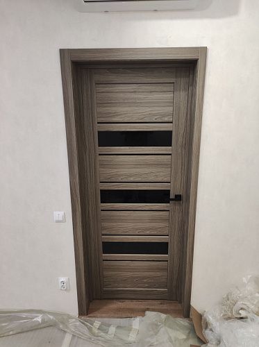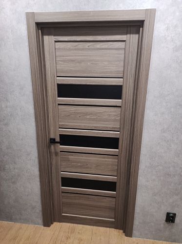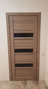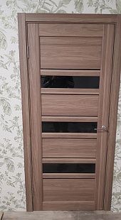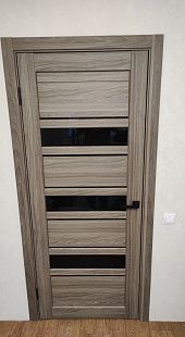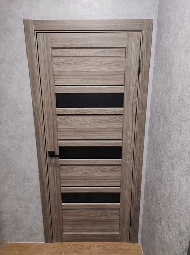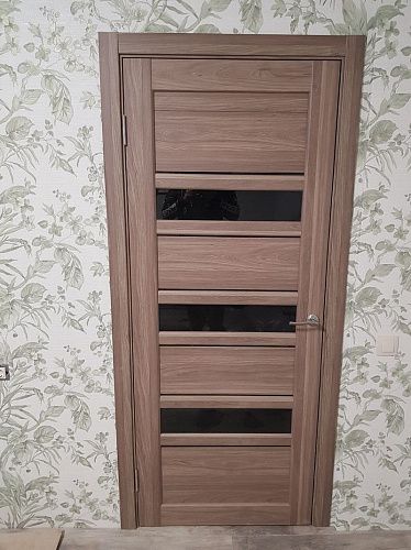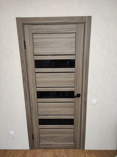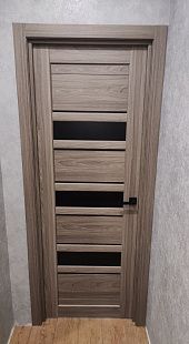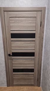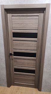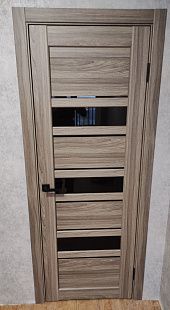 Дверь ПО Queen X3 Дуб тортора черное стекло из Экошпона COVERFLEX (Двери Нева) в Приозерске с установкой и доставкой